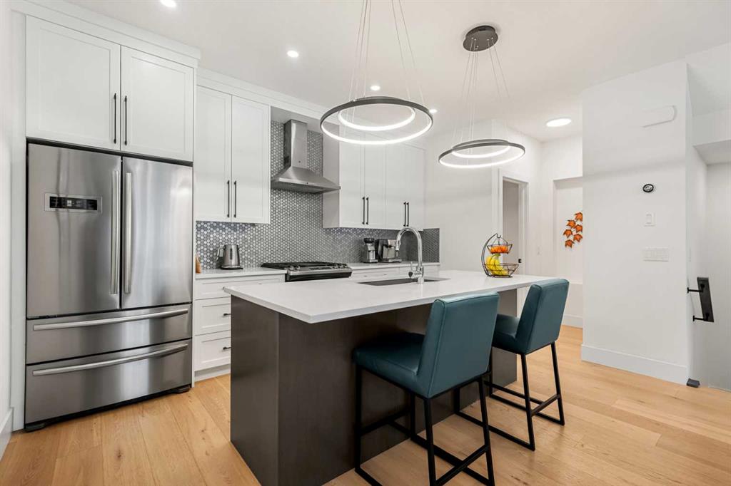 Welcome to this bright and modern townhome in the heart of Killarney. With over 1,950 sq. ft. of beautifully designed living space, this west-facing home seamlessly combines upscale finishes with thoughtful functionality across all levels. The open-concept main floor features 9-ft ceilings, luxury vinyl plank flooring, and an abundance of natural light. A linear gas fireplace anchors the living room, while the chef-inspired kitchen showcases a massive quartz island, full-height cabinets, a bold tile backsp...