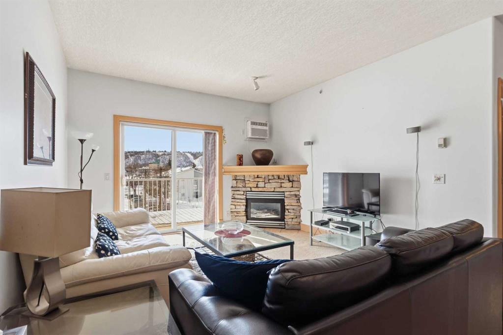 Welcome to this spacious TOP FLOOR 2-bedroom, 2-bathroom condo offering comfort, style, and convenience! This bright and well-designed unit features an open-concept layout filled with natural light, highlighted by a generous living room complete with a cozy corner fireplace and a wall A/C unit (new in 2025) with in-floor heat for the winter months. The kitchen and dining area flow seamlessly together, boasting ample counter space, an eat-up bar, and a convenient pantry - perfect for both everyday living an...